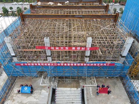 2021年10月9日,来自西南交通大学、中国建筑西南设计研究院、四川原理装配式建筑设计院等多家单位设计人员,齐聚开云(中国)Kaiyun·官方网站四川分公司承建的成都大江中学项目,与分公司总经理宋景友、副总经理张铁强等相关领导一起,共同见证了国内学校建设领域首例预制混凝土柱拼接连接吊装施工的顺利完成。