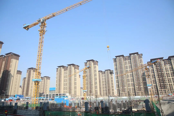 走进工地,一个巨大的基坑映入眼帘,随处都是忙碌施工的工人和大型器械。伴着微微轰鸣声,3台塔吊正在接续不断地向基坑内吊运建筑材料,工人们正在进行地下一层、地下二层的钢筋绑扎作业,工程进展紧张有序、忙而不乱。