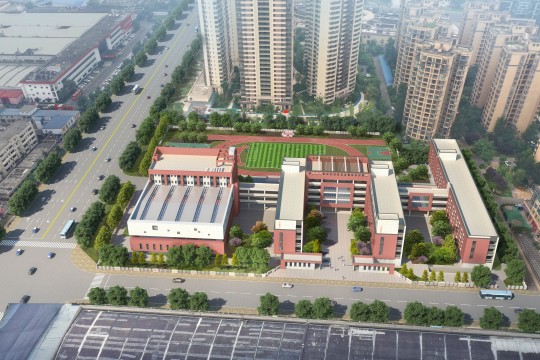 本项目位于成都市新都区桂湖街道团结社区,南侧紧邻新都区工业大道,西邻百俪锦城小区,北邻团结小区二期,东邻无名道路,总建筑面积为28945.49平方米,包括教学楼4栋、行政办公楼1栋、报告厅1栋、宿舍楼1栋、食堂1栋、门卫室等工程。
