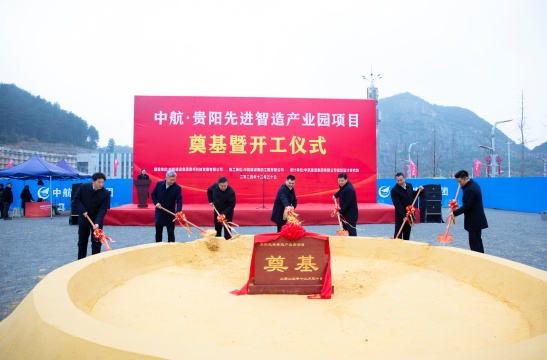 贵阳市委副书记、代市长王宏宣布项目开工并参加奠基培土。在领导和各位嘉宾的共同见证下,中航·贵阳先进智造产业园项目奠基暨开工仪式圆满举行。